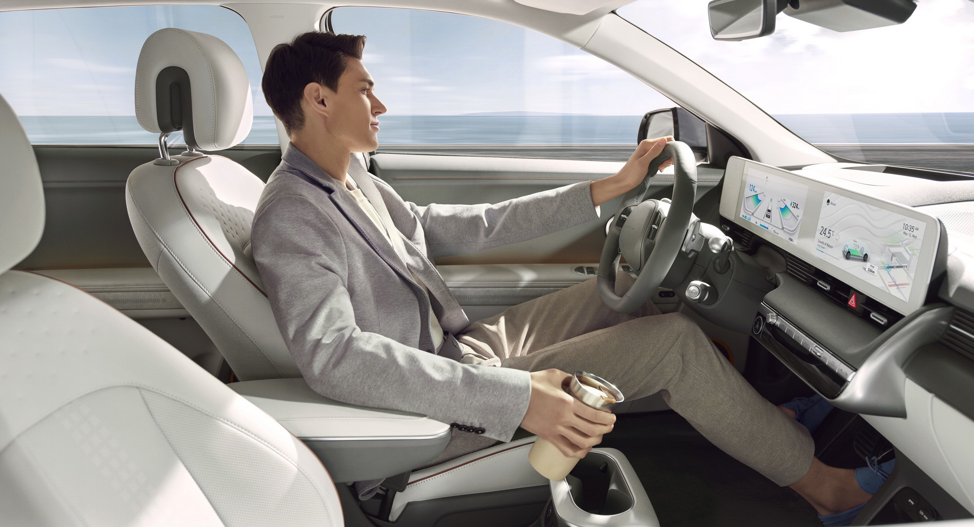 Nouvelle Hyundai Ioniq Tamer 5, j'adore particulièrement cette photo officielle qui sublime la branlitude du client visé :